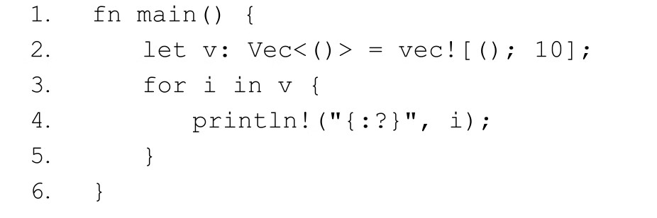 代码清单3-8展示了一种迭代技巧,使用Vec<()>迭代类型。
