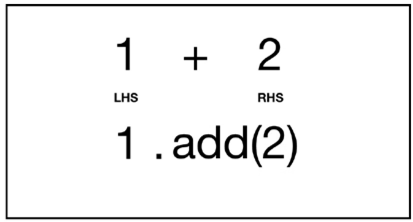 当代码中出现操作符“+”的时候,Rust就会自动调用操作符左侧的操作数对应的add()方法,去完成具体的加法操作,也就是说“+”操作与调用add()方法是等价的,如图3-3所示。
