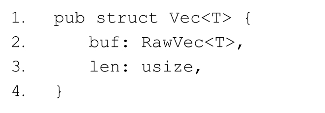 注意看第3行代码中的impl<T>,此处必须声明泛型T。Rust标准库提供的各种容器类型大多是泛型类型。比如向量Vec<T>就是一个泛型结构体,代码清单3-19展示了其在Rust源码中的实现。