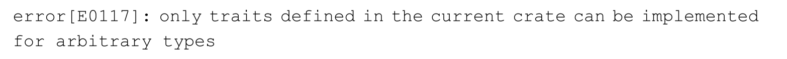 这是因为Rust遵循一条重要的规则:孤儿规则(Orphan Rule)。孤儿规则规定,如果要实现某个trait,那么该trait和要实现该trait的那个类型至少有一个要在当前crate中定义。在代码清单3-28中,Add trait和u32、u64都不是在当前crate中定义的,而是定义于标准库中的。如果没有孤儿规则的限制,标准库中u32类型的加法行为就会被破坏性地改写,导致所有使用u32类型的crate可能产生难以预料的Bug。