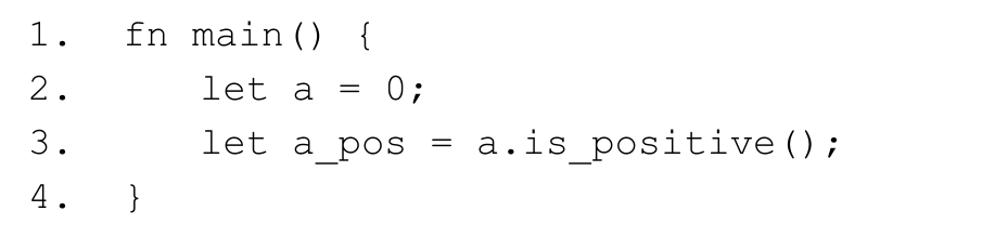 代码清单3-15中的is_positive()是整数类型实现的用于判断正负的方法。但是当前Rust编译时此代码会出现下面的错误: