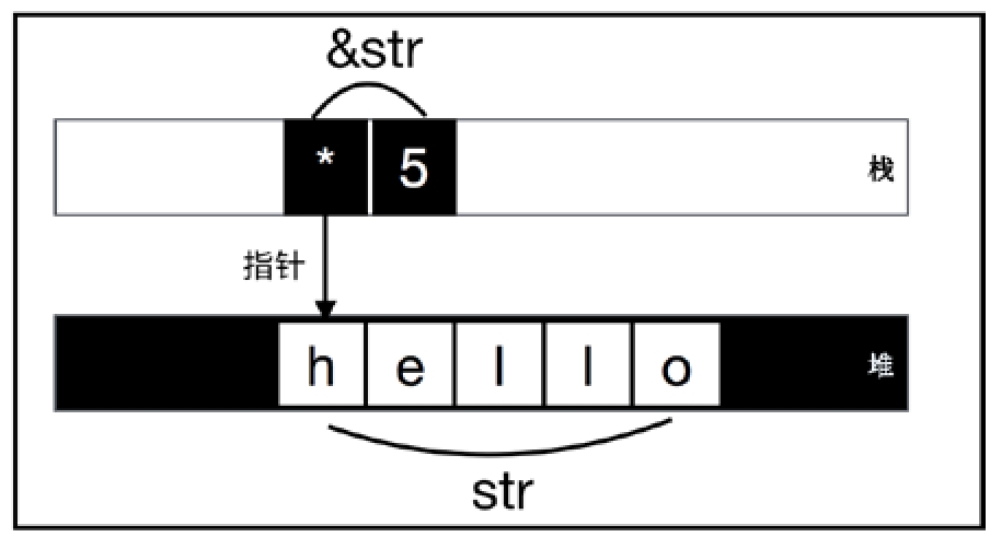 &str存储于栈上,str字符串序列存储于堆上。这里的堆和栈是指不同的内存空间,在第4章会详细介绍。&str 由两部分组成:指针和长度信息,如代码清单3-1所示。其中指针是固定大小的,存储的是 str字符串序列的起始地址,长度信息也是固定大小的整数。这样一来,&str就变成了可确定大小的类型,编译器就可以正确地为其分配栈内存空间,str也会在运行时在堆上开辟内存空间。