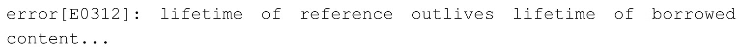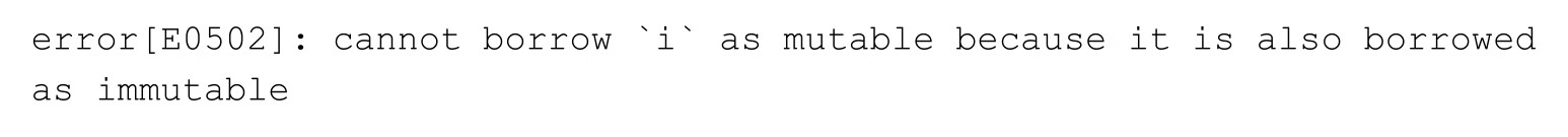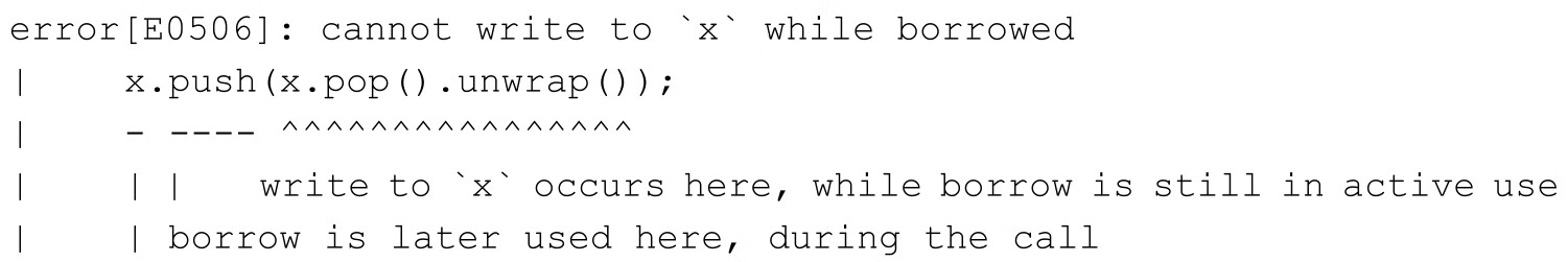 代码清单5-65中的写法并不被NLL支持。NLL不仅改进了借用检查器,还提升了错误提示的精准度。根据预想,代码清单5-65将会报如下错误: