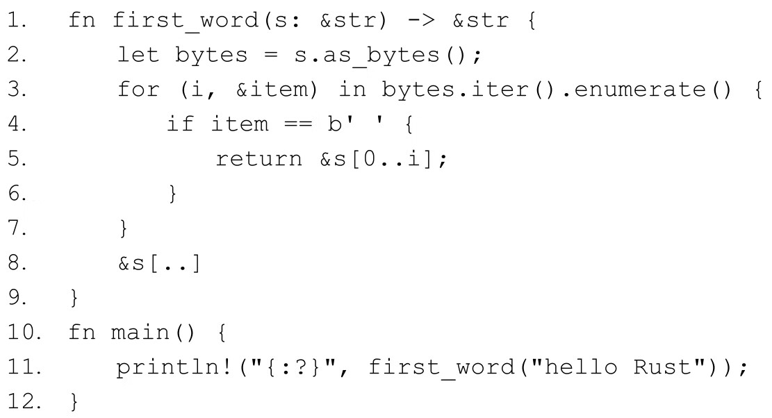 代码清单5-2:等价于代码清单5-1的Rust代码