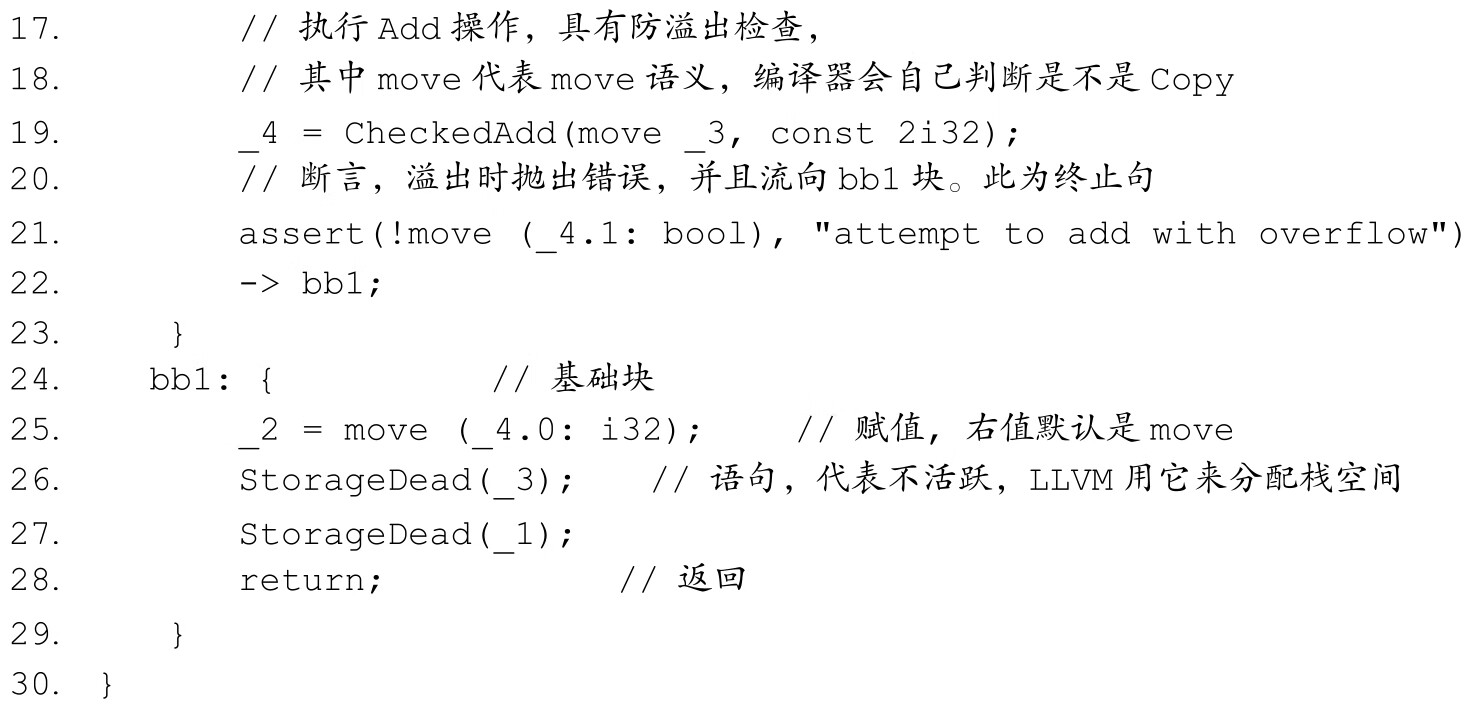 代码清单5-61可以在play.rust-lang.org中生成MIR代码,如代码清单5-62所示。