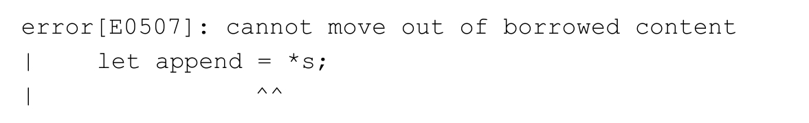 而代码清单5-2(Rust代码)在编译时就会报错。编译器提示orig是已经被“移动”的值。这里的“移动”在语义层面与C++代码中的move函数等价。orig已经将所有权转让给了stolen,Rust编译器检查到了这一点,发现这里存在解引用空指针的安全隐患,然后就报错了。
