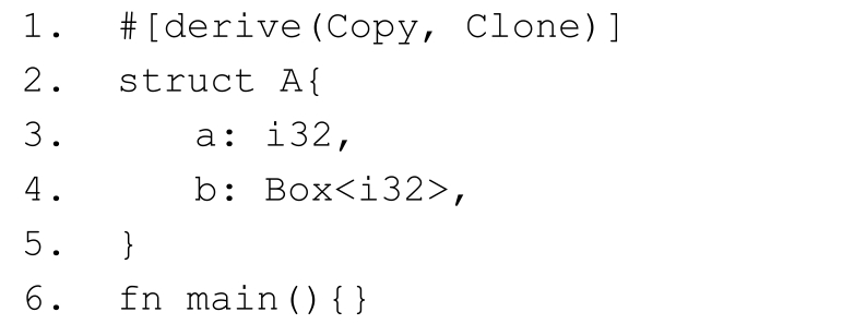 Rust编译器阻止了Struct A实现Copy,因为Box<T>是引用语义,如果按位复制,会有内存安全隐患。