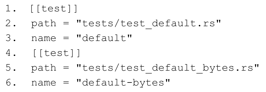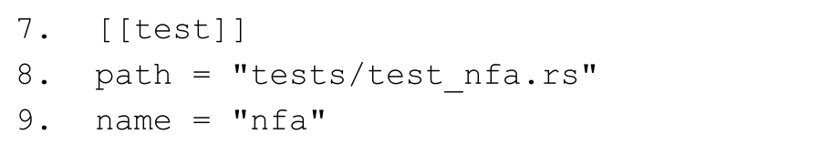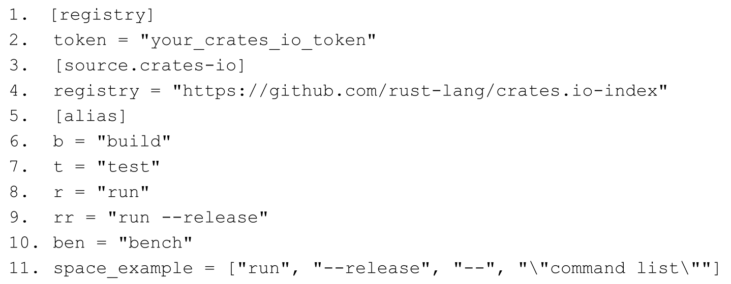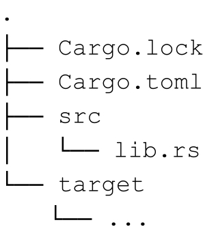 该包中包含的文件有Cargo.toml和src/lib.rs。其中Cargo.toml是包的配置文件,是使用TOML语言[1]编写的。TOML语言的特色是:规范简单、语义明显、阅读性高。TOML专门被设计为可以无歧义地映射为哈希表,从而可以更容易地解析为各种语言中的数据结构。而Cargo.toml正是元数据文件之一。打开Cargo.toml,可以看到如代码清单10-1所示的代码。