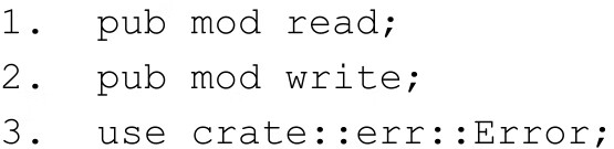 代码清单10-56展示了main.rs中需要修改的部分。代码第2~5行,使用use引入core模块中的子模块read和write。