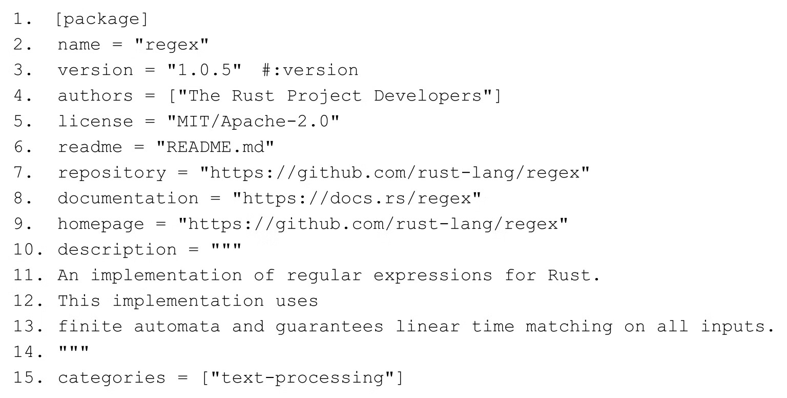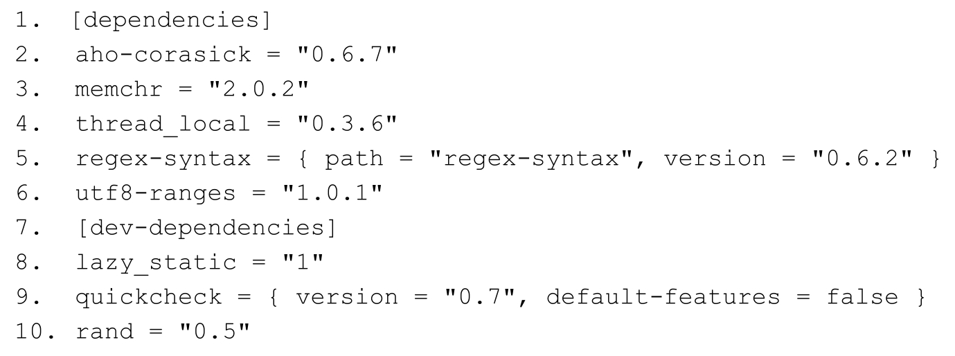 代码清单10-6:在Cargo.toml文件中添加regex依赖