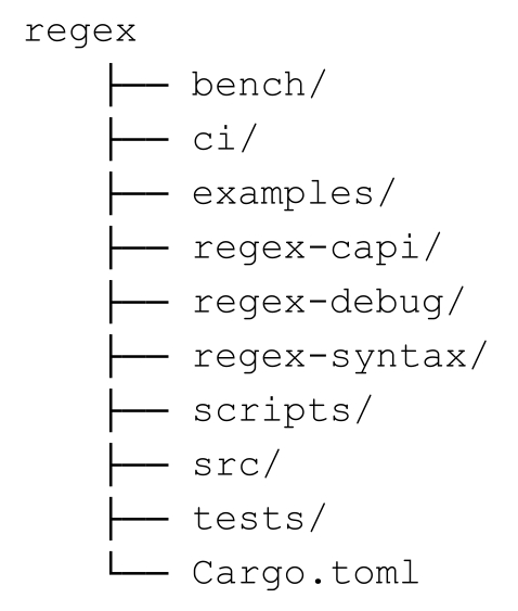 [3] 在GitHub上面查找rust-lang/regex,可以看到源码。