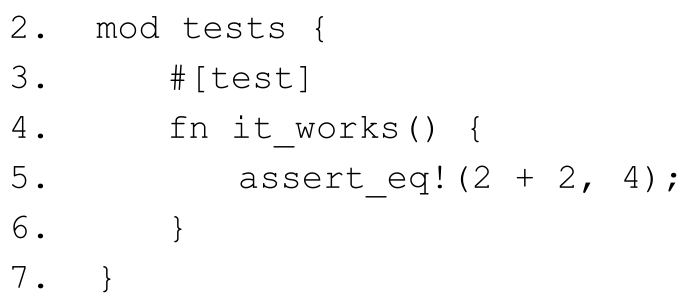 代码第5行的#[test]属性表示其标识的函数为测试函数,否则为普通的函数。如果想忽略此测试函数,只需要在#[test]属性下面再添加#[ignore]属性即可。