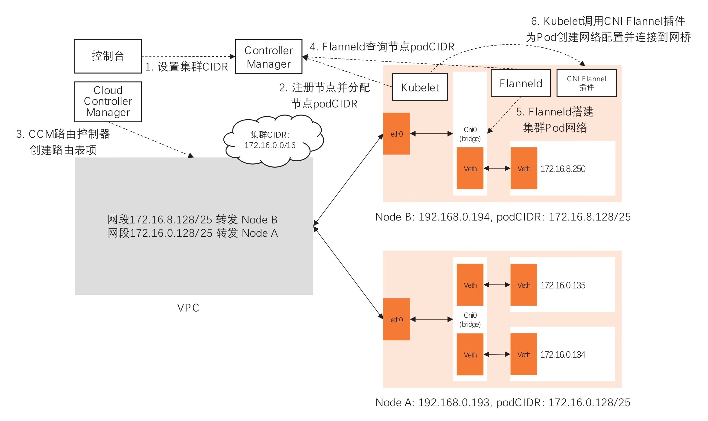 跨节点Pod通信略微复杂一点,但也很直观,发送端数据包通过Cni0网桥的网关流转到节点上,然后经过节点eth0发送给VPC路由。这不会经过任何封包操作。当VPC路由收到数据包时,它通过查询路由表,确认数据包目的地,并把数据包发送给对应的ECS节点。而进入节点之后,因为Flanneld在节点上创建了Cni0的路由,所以数据包会被发送到目的地的Cni0局域网,再到目的地Pod。