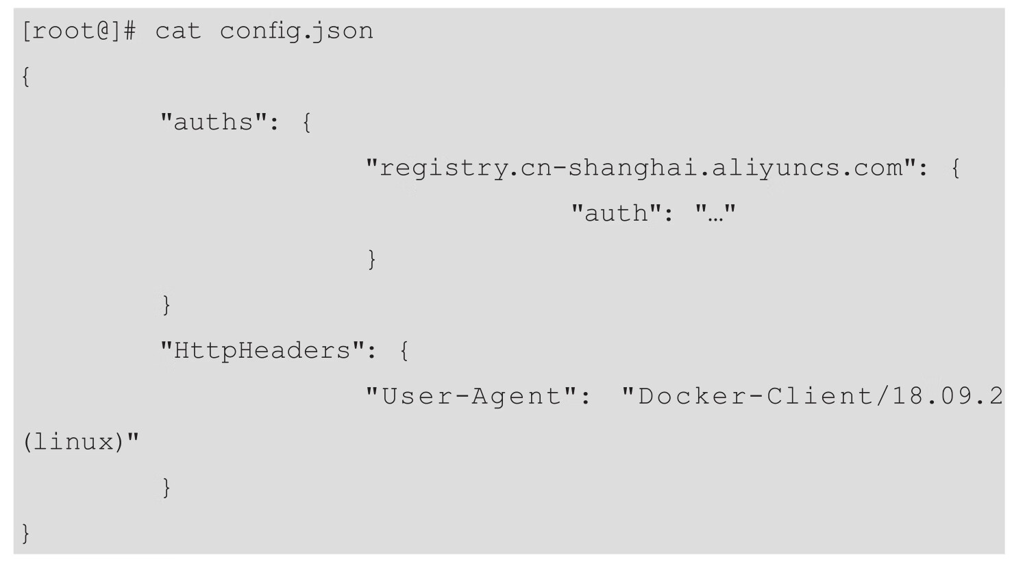 以下是登录仓库之后的docker.json文件。这个文件作为docker登录仓库的唯一证据,在后续镜像仓库操作中,会被不断地读取并使用。其中关键信息auth就是用户名和密码的Base64编码。