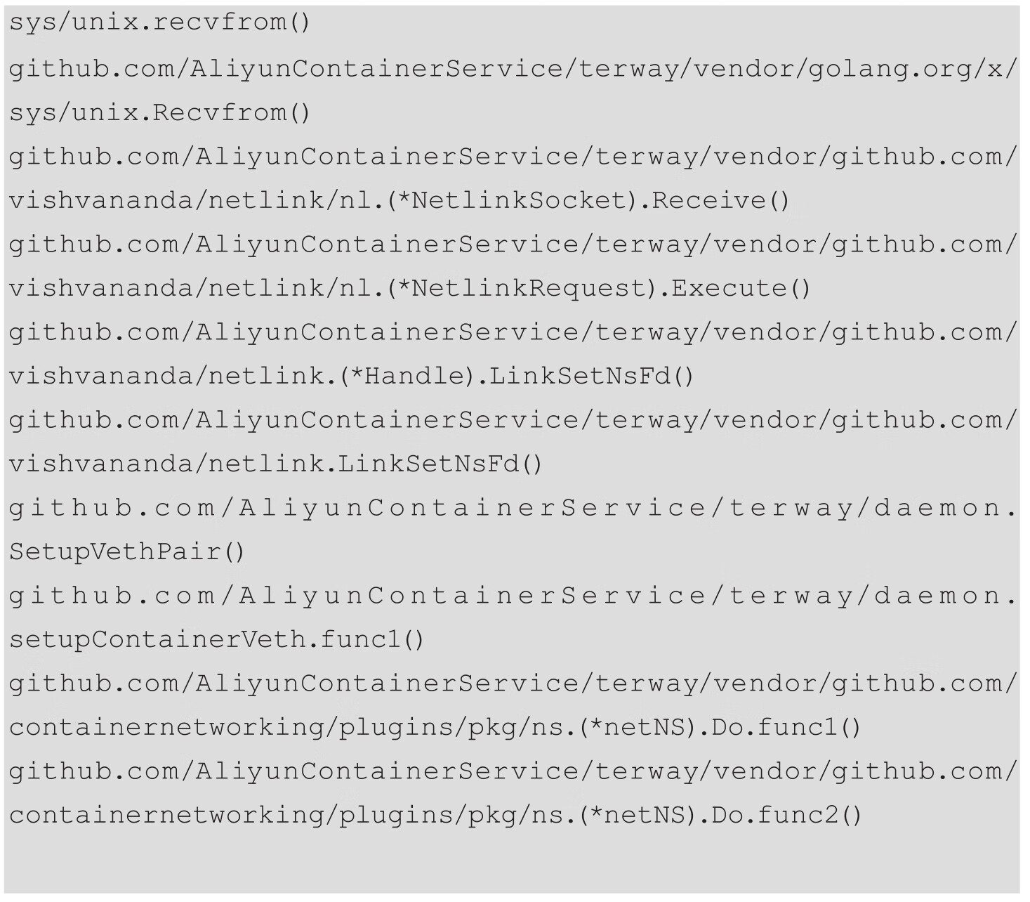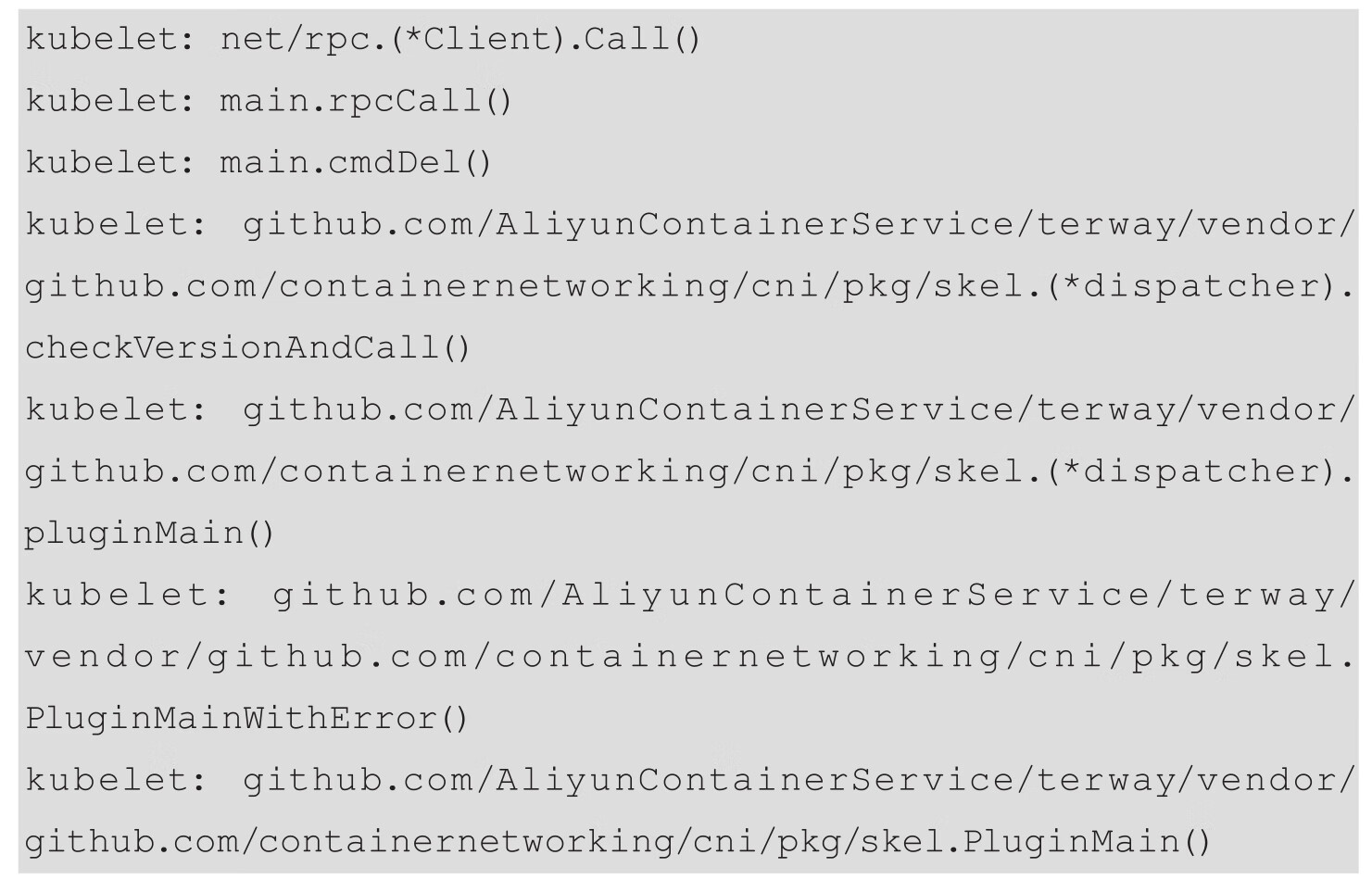 以上线程通过rpc调用Terwayd来真正移除Pod网络,所以我们需要进一步排查Terwayd的调用栈,以进一步定位此问题。