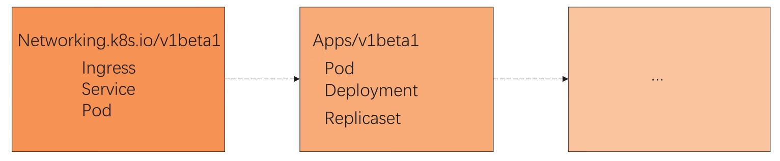 我们创建的每一个资源,都必然属于某一个API分组/版本。以下面的Ingress为例,我们指定Ingress资源的分组/版本为networking.Kubernetes.io/v1beta1。