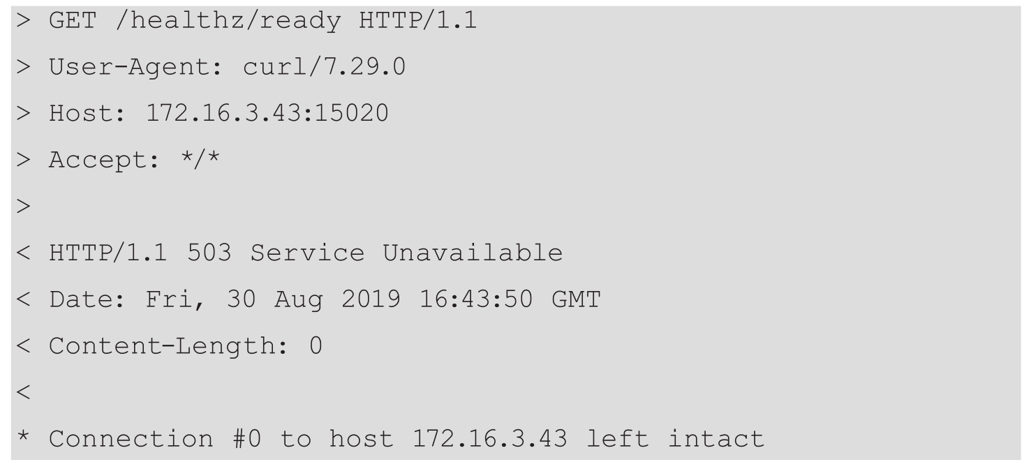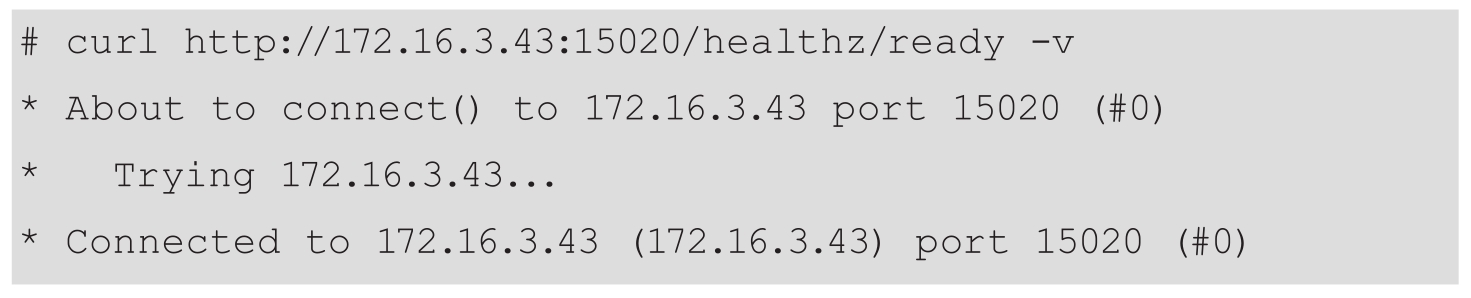 我们登录这个Pod所在的节点,用curl工具来模拟Kubelet访问下面的URI,测试istio-proxy的就绪状态。