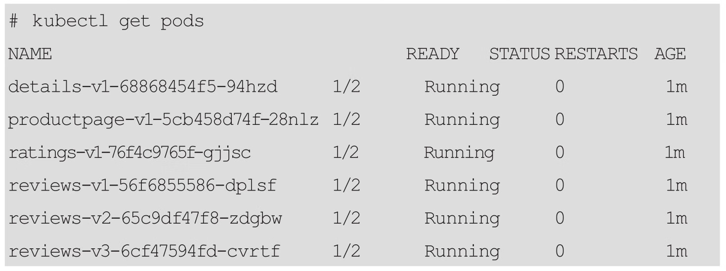 问题是这样的:用户在自己的测试集群里安装了Istio,并依照官方文档部署bookinfo应用。部署之后,用户执行kubectl get pods命令,发现所有的Pod都只有二分之一个容器是Ready的。