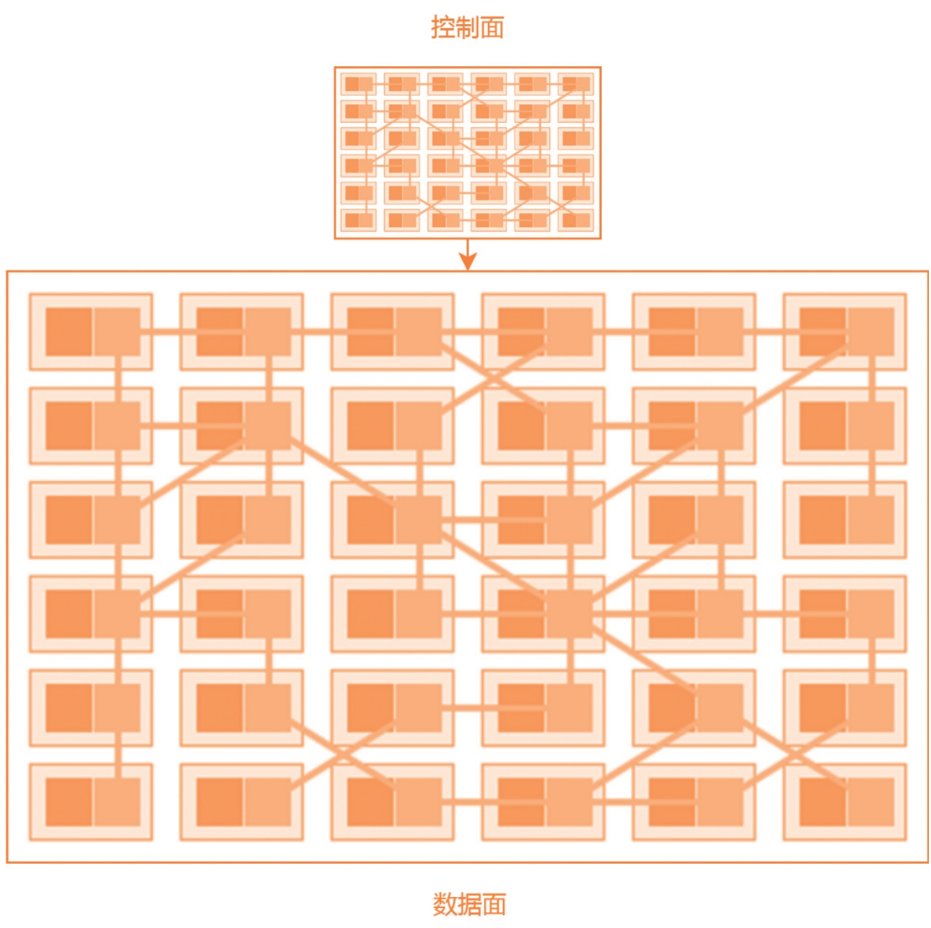 之所以认为这是两个极端,是因为在第一个例子中,控制面仅仅影响了电脑的一个属性,而在第二个例子中,控制面几乎是数据面的一个完整的抽象和拷贝,影响数据面的方方面面。Istio服务网格的控制面是比较接近第二个例子的情况,如图17-6所示。