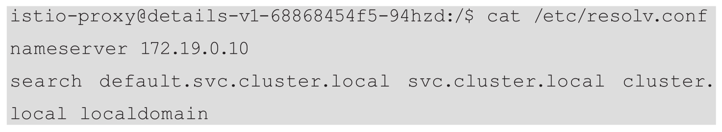 这个问题的原因其实比较简单,在sidecar容器istio-proxy里,Envoy不能访问Pilot的原因是集群DNS无法解析istio-pilot.istio-system这个服务名字。在容器里看到resolv.conf配置的DNS服务器地址是172.19.0.10,这个是集群默认的kube-dns服务地址。