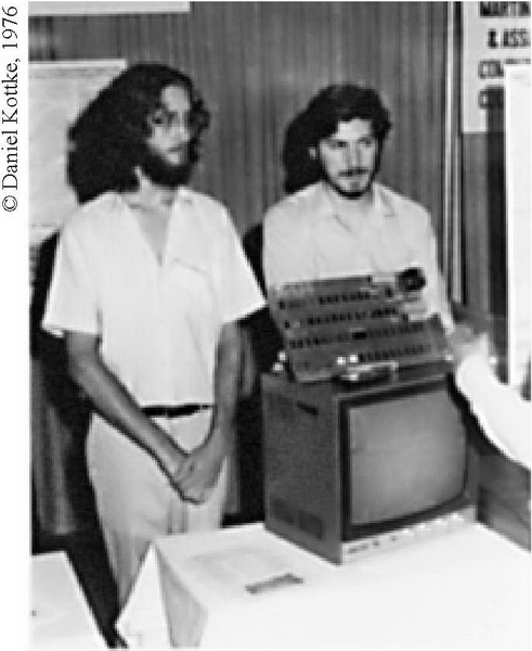 1976年,丹尼尔·科特基和乔布斯在大西洋城举行的个人电脑节上展示Apple I