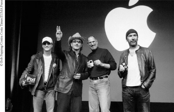 2004年,吉米·约维内、波诺、乔布斯与伊凡斯