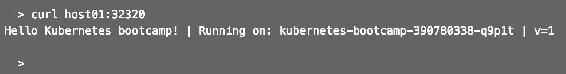 Kubernetes是默认的service,暂时不用考虑。kubernetes-bootcamp是我们应用的service,8080端口已经映射到host01的32320端口,端口号是随机分配的,可以执行如下命令访问应用,结果如图1-10所示。