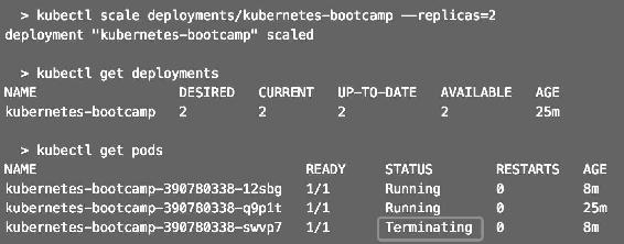 kubectl scale deployments/kubernetes-bootcamp --replicas=2