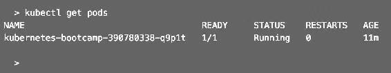 这里我们通过kubectl run部署了一个应用,命名为kubernetes-bootcamp,如图1-6所示。