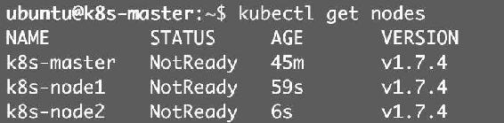 根据提示,我们可以通过kubectl get nodes查看节点的状态,如图3-6所示。