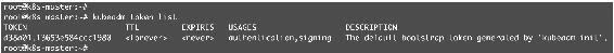 这里的--token来自前面kubeadm init输出的第9步提示,如果当时没有记录下来,可以通过kubeadm token list查看,如图3-4所示。