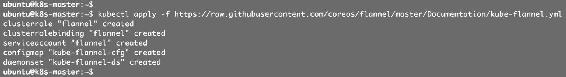 kubectl apply -f https://raw.githubusercontent.com/coreos/flannel/master/Documentation/kube-flannel.yml
