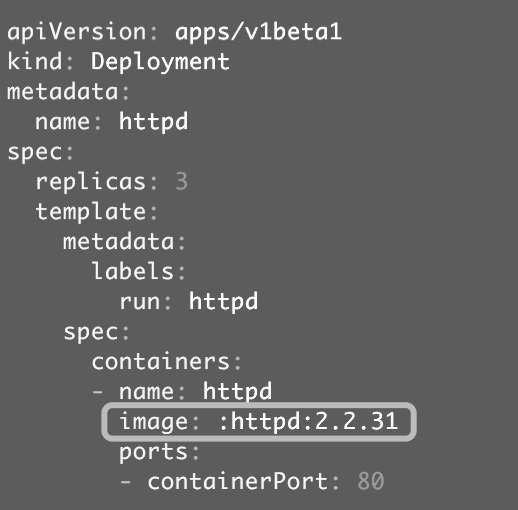 下面我们部署三副本应用,初始镜像为httpd:2.2.31,然后将其更新到httpd:2.2.32。
