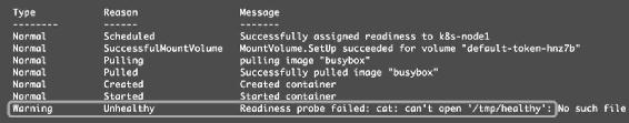 通过kubectl describe pod readiness也可以看到Readiness探测失败的日志,如图8-11所示。