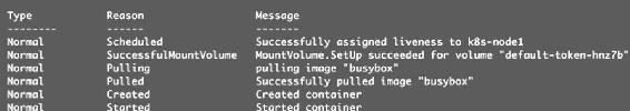 从配置文件可知,最开始的30秒,/tmp/healthy存在,cat命令返回0,Liveness探测成功,这段时间kubectl describe pod liveness的Events部分会显示正常的日志,如图8-6所示。