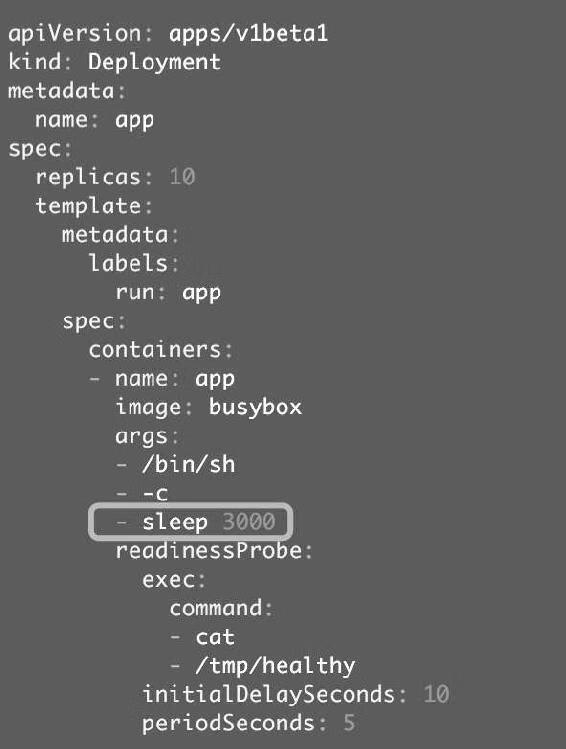 在我们的设定中,新副本始终都无法通过Readiness探测,所以这个状态会一直保持下去。