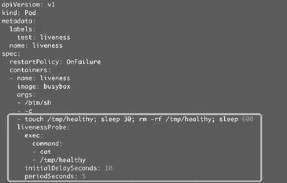 下面我们模拟一个容器发生故障的场景,Pod配置文件如图8-1所示。
