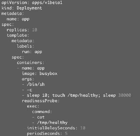 Readiness探测的配置语法与Liveness探测完全一样,如图8-9中的例子所示。