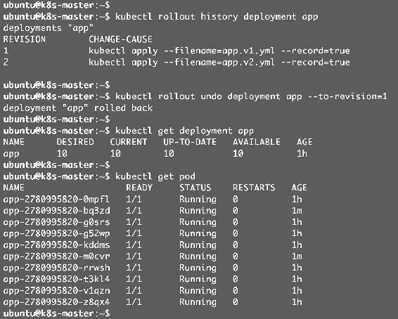 如果滚动更新失败,可以通过kubectl rollout undo回滚到上一个版本,如图8-19所示。
