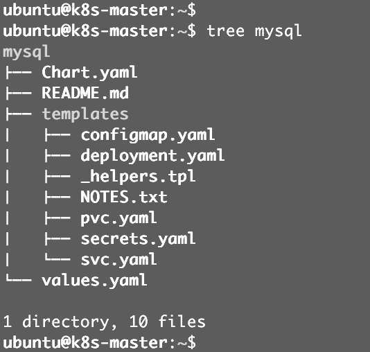 目录名就是chart的名字(不带版本信息),这里是mysql,包含如下内容。