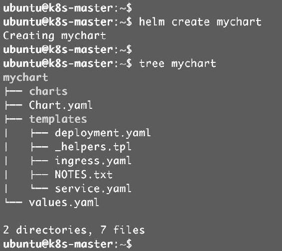 执行helm create mychart命令,创建chart mychart,如图11-39所示。