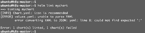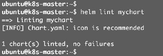 helm lint会检测chart的语法,报告错误以及给出建议。