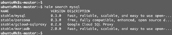 与apt和yum一样,helm也支持关键字搜索,如图11-14所示。包括DESCRIPTION在内的所有信息,只要跟关键字匹配,都会显示在结果列表中。