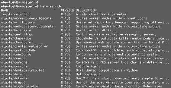 Helm安装成功后,可执行helm search查看当前可安装的chart,如图11-12所示。
