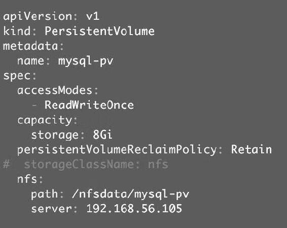 chart定义了一个PersistentVolumeClaim,申请8GB的PersistentVolume。由于我们的实验环境不支持动态供给,因此要预先创建好相应的PV,其配置文件mysql-pv.yml的内容如图11-31所示。
