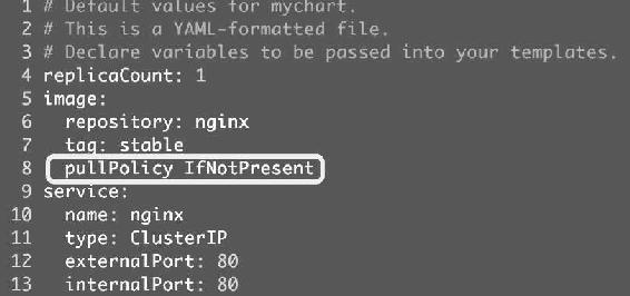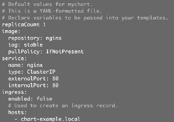 新建的chart默认包含一个nginx应用示例,values.yaml内容如图11-40所示。