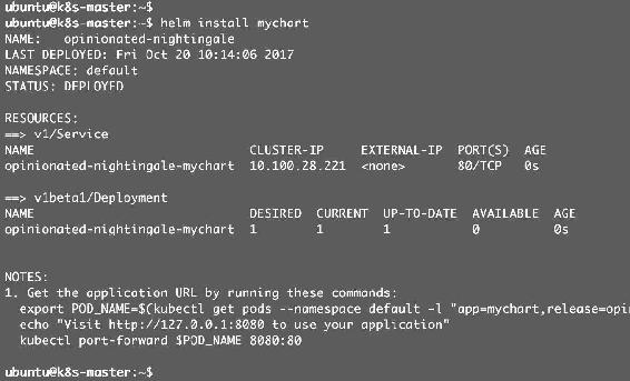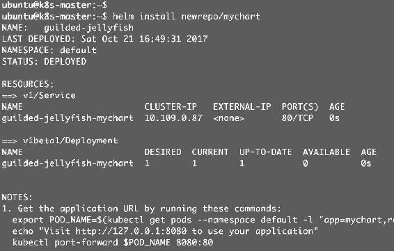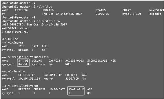 通过helm list和helm status可以查看chart的最新状态,如图11-34所示。