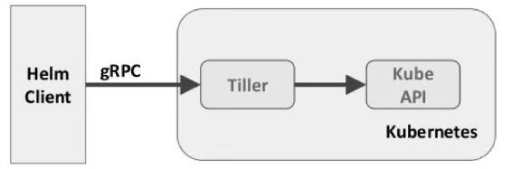 Helm由客户端和Tiller服务器组成。客户端负责管理chart,服务器负责管理release。