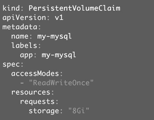 (3)PersistentVolumeClaim,为MySQL申请持久化存储空间,如图11-3所示。