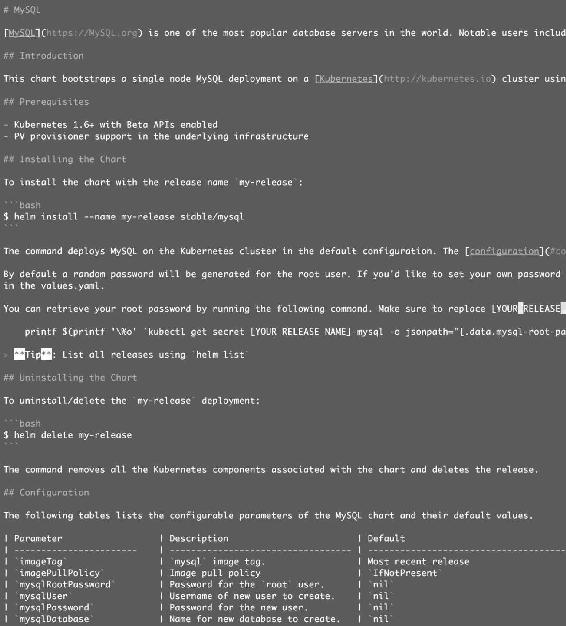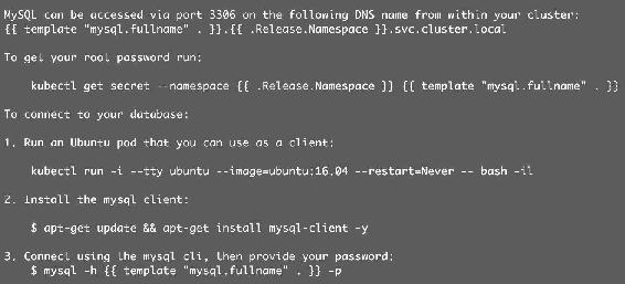 ③ NOTES部分显示的是release的使用方法,比如如何访问Service、如何获取数据库密码以及如何连接数据库等。